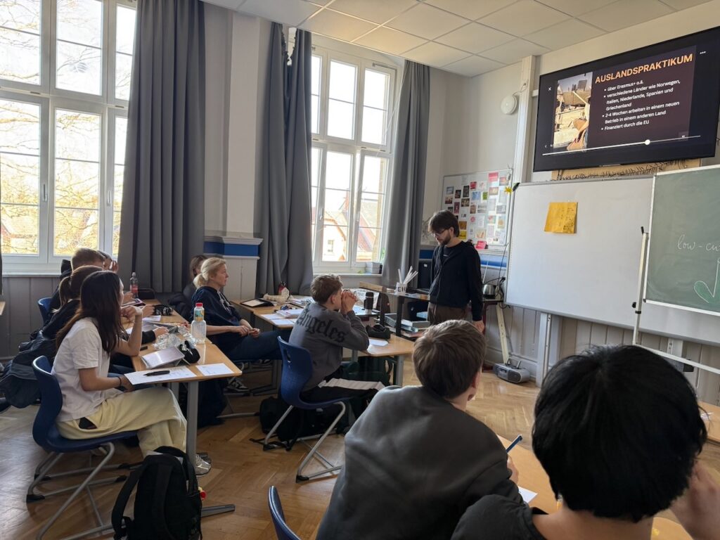 Heute waren die ersten Ausbildungsbotschafter aus den Bereichen KFZ-Mechatronik und Elektrik zu Besuch an der Lademann-Realschule. Sie berichteten von ihrer Ausbildung und ihren persönlichen Erfahrungen. Die Schülerinnen und Schüler konnten Fragen stellen und so direkt aus erster Hand mehr über die Berufe erfahren. Dadurch entstand ein Austausch auf Augenhöhe, der einen realistischen Einblick in den Berufsalltag ermöglicht hat